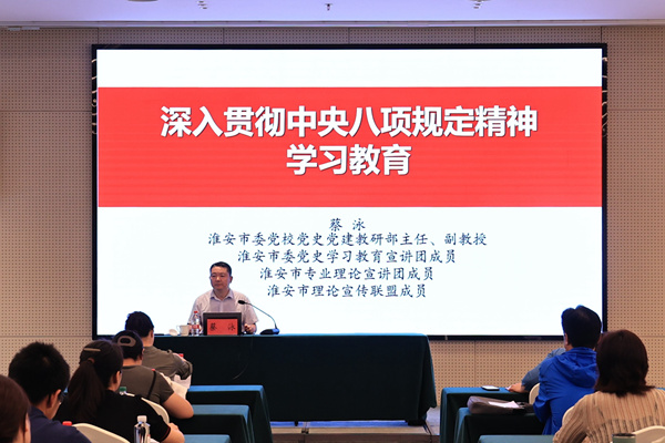 此次培訓班邀請了中共淮安市委統戰部常務副部長、市社會主義學院院長施勇作《周恩來與統一戰線》專題講座,中共淮安市委黨校黨史黨建教研部主任、副教授蔡泳作《深入貫徹中央八項規定精神學習教育》專題授課。