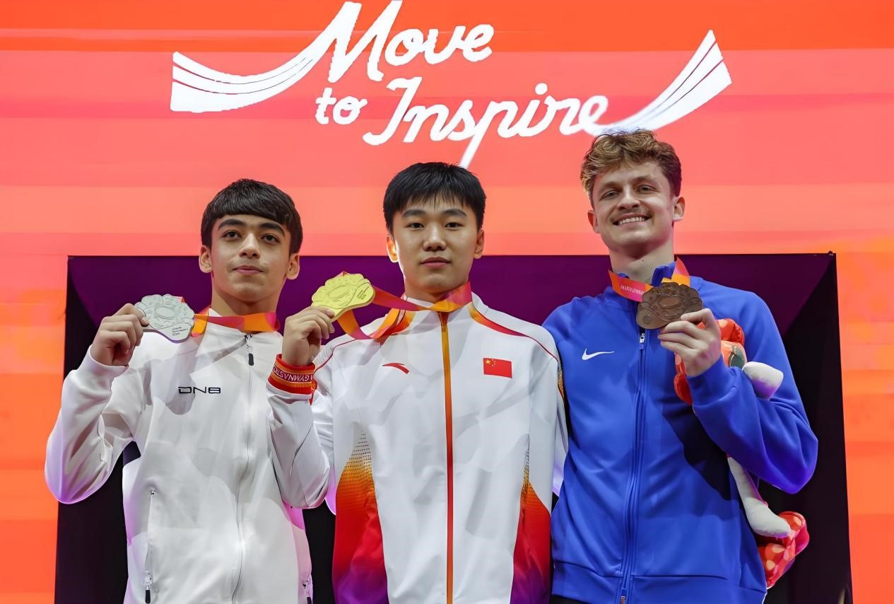 在競爭激烈的體操賽場上,洪延明頂住壓力,發揮穩定,以一套高難度、高質量的動作征服了裁判和觀眾。這塊金牌不僅展現了洪延明過硬的技術水平和心理素質,更體現了中國體操新生代的實力與潛力。