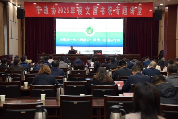 2025 年11月3日,民進鎮江市句容支部會員高愷博士應句容市政協邀請做客文昌書院,以《全國統一大市場建設:政策、機遇與行動》為題,帶來一場兼具理論深度與實踐價值的精彩講座。